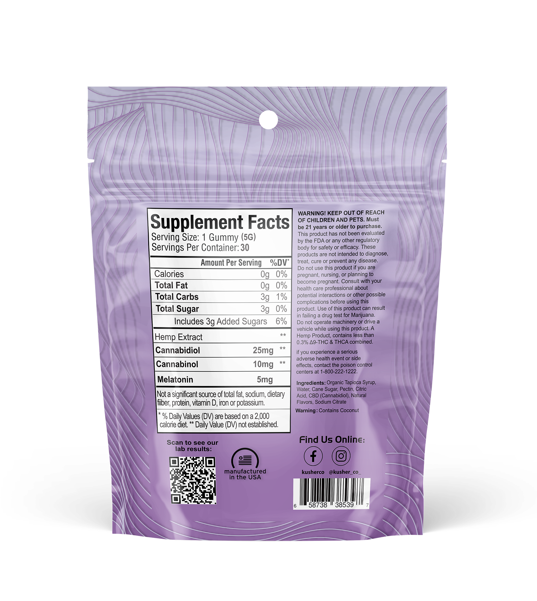 Night Time - Kosher Hemp Gummies (CBD + CBN & Melatonin)